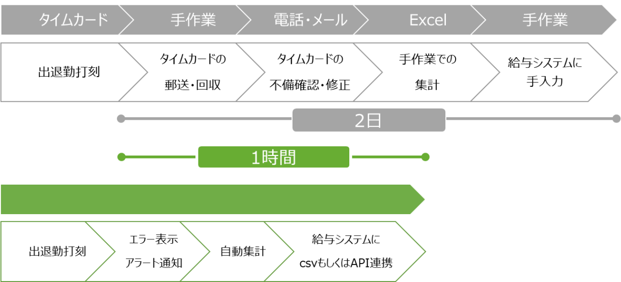 紙のタイムカードやExcelでの勤怠管理など、独自の勤怠ルールを持つお客様でもスムーズにご利用いただけます。